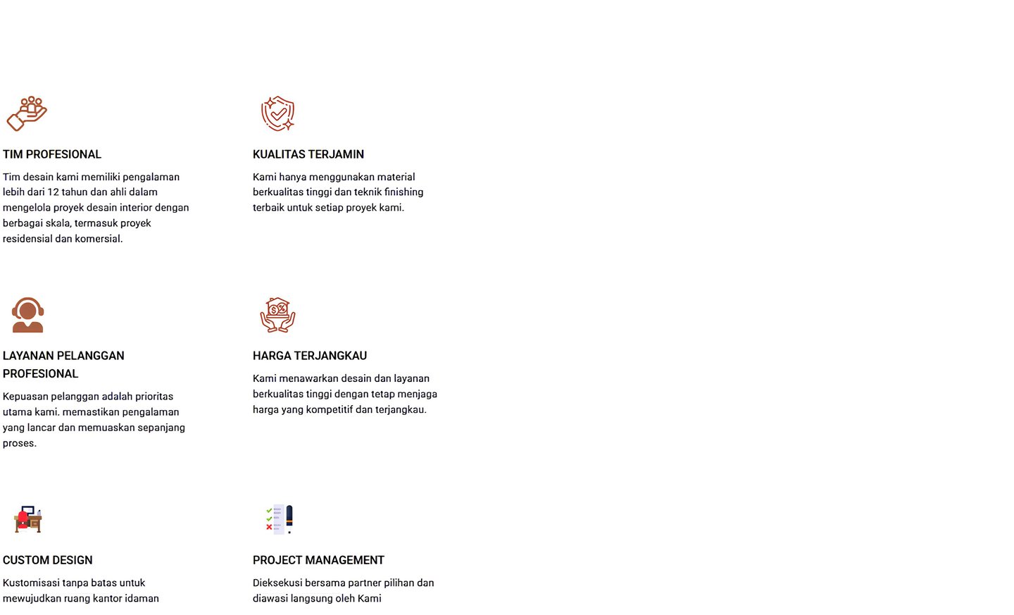 Memberikan solusi desain interior yang fungsional, estetis, dan sesuai kebutuhan klien.