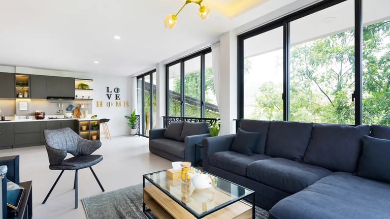Sebuah villa di area Dago Village didesign dengan konsep Japandi Modern yang mostly menggunakan tone warna monochrome sehingga dapat membuat villa tersebut terkesan elegan, clean dan tetap luas